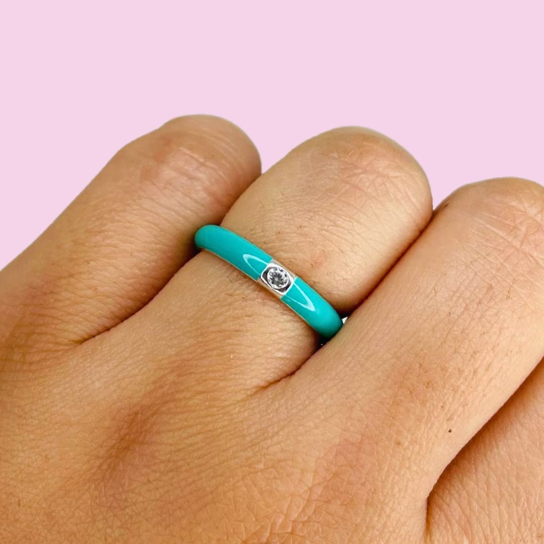 Anillo Turquesa Esmaltado con cubic Plata Italiana