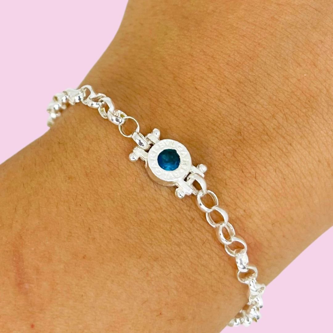 Pulsera Rolo con dije Bvlg con piedra Aguamarina Plata 925