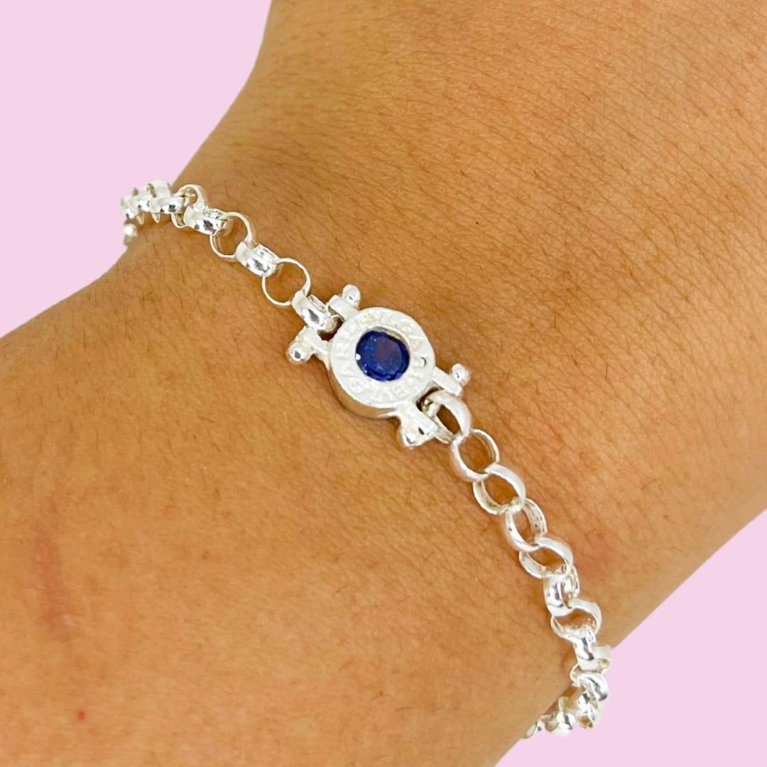Pulsera Rolo con dije Bvlg con piedra Lila Plata 925