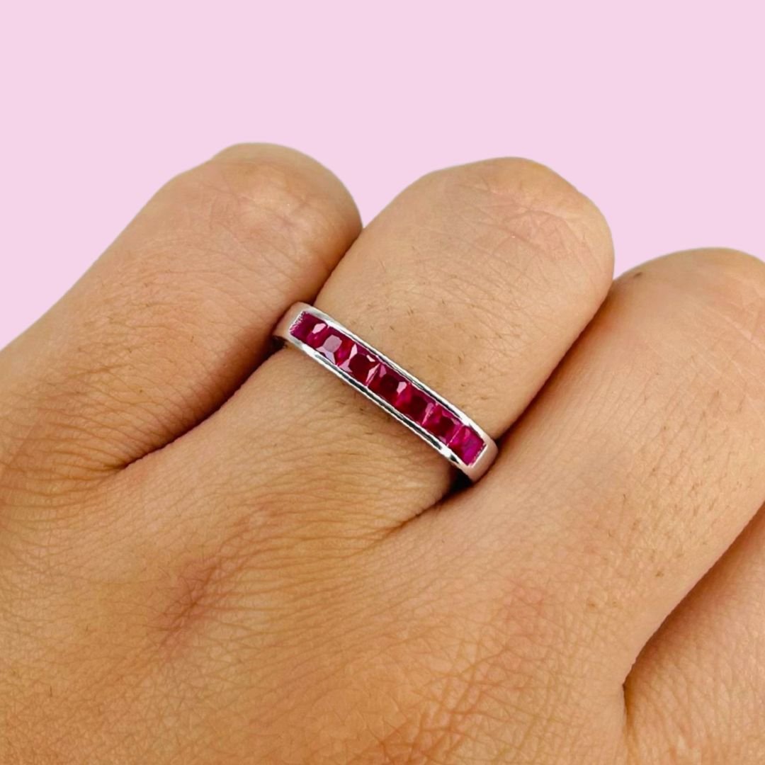 Anillo Cuadrado con baguette fucsia Plata Italiana