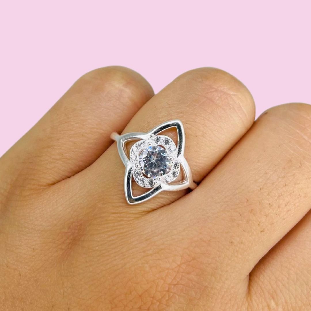 Artículo: AP 670}Anillo Cruz del norte con cubic y micropave blanco Plata Italiana