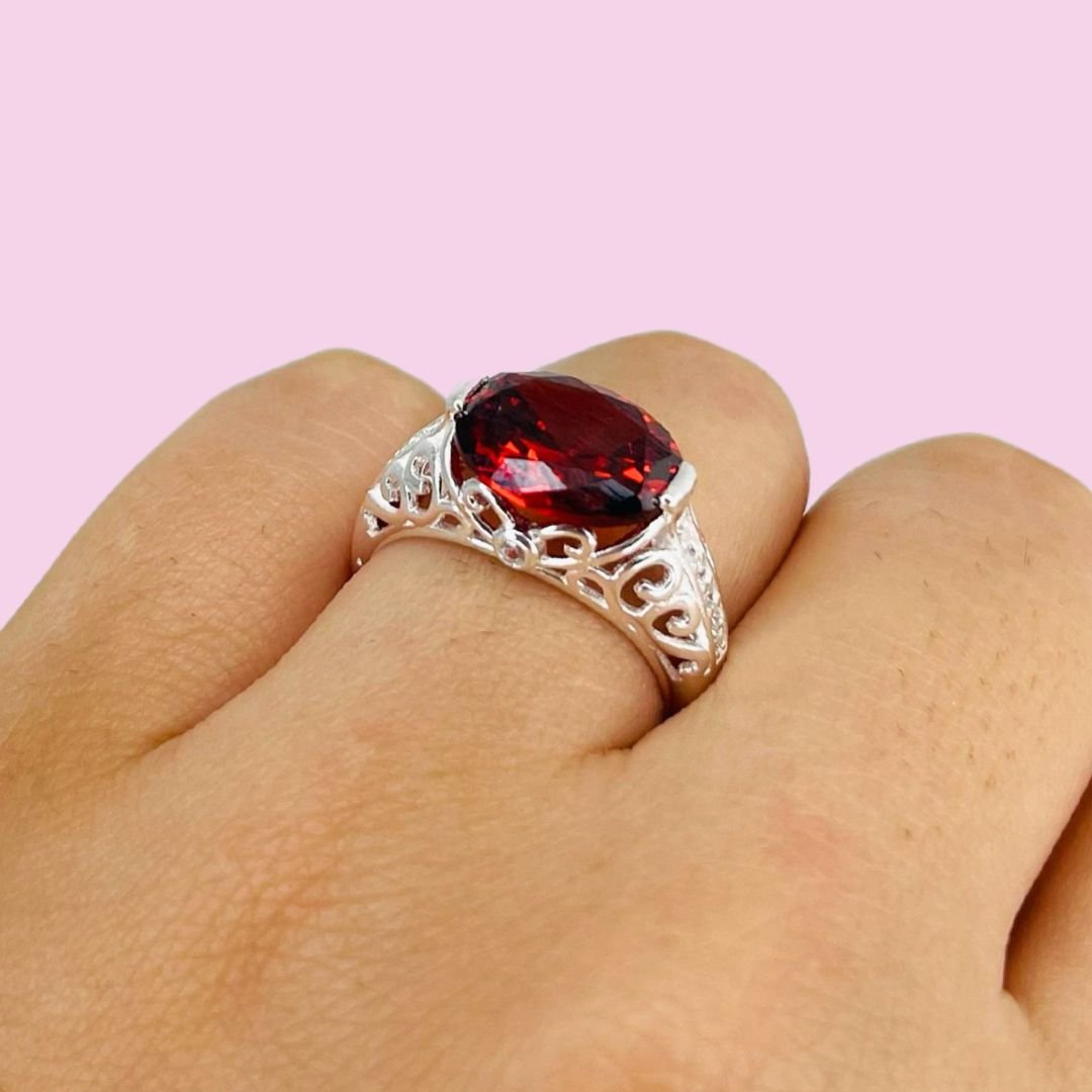 Anillo Corte Real con piedra Rubi Plata Italiana