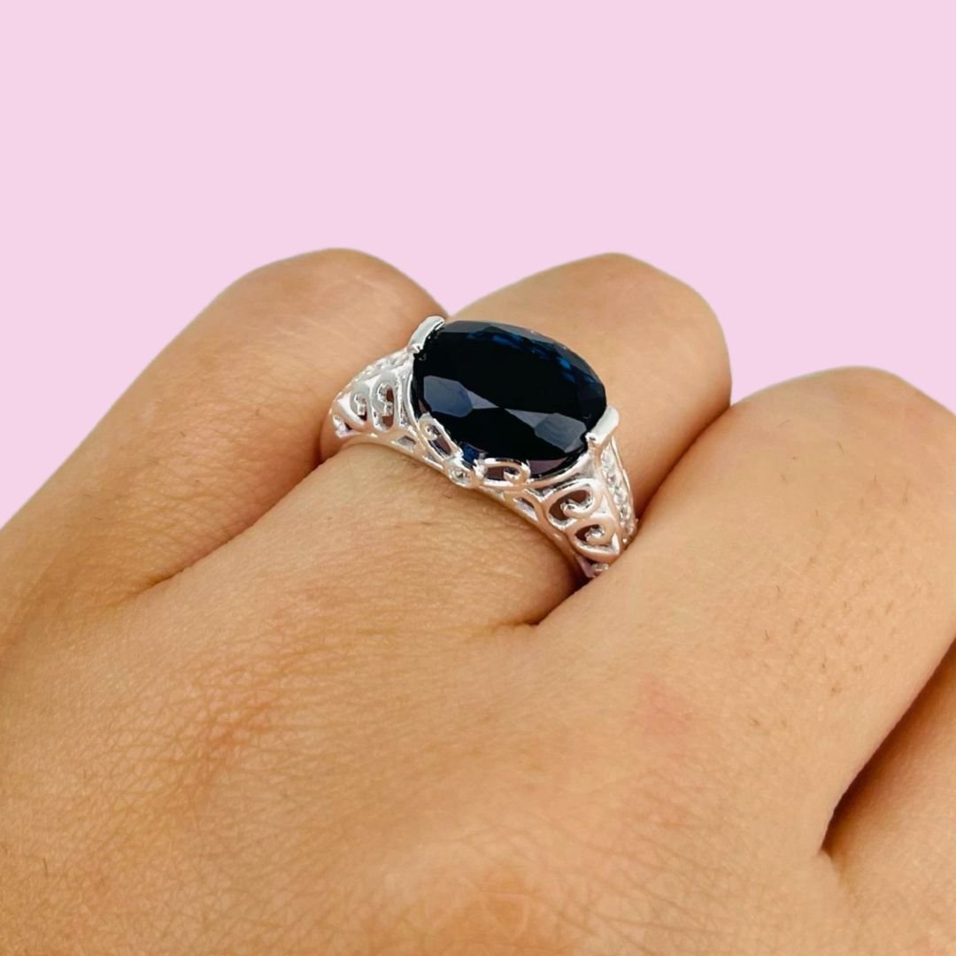 Anillo Corte Real con piedra Azul Plata Italiana