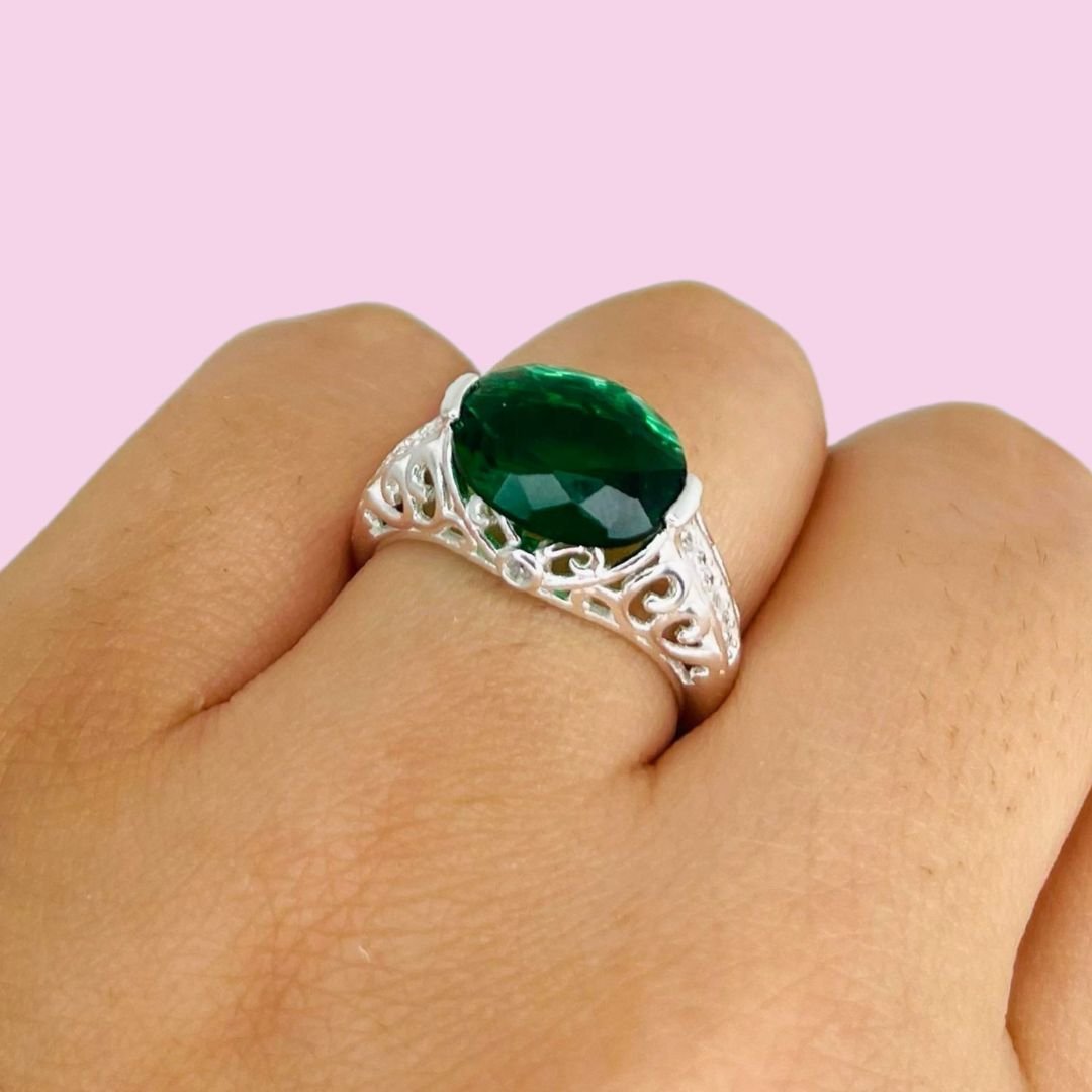 Artículo: AP 668-4Anillo Corte Real con piedra Verde Plata Italiana