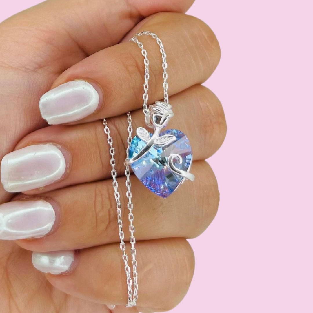 Artículo: KIT 336Conjunto Piedra corazon swarovski con rosa Plata Italiana