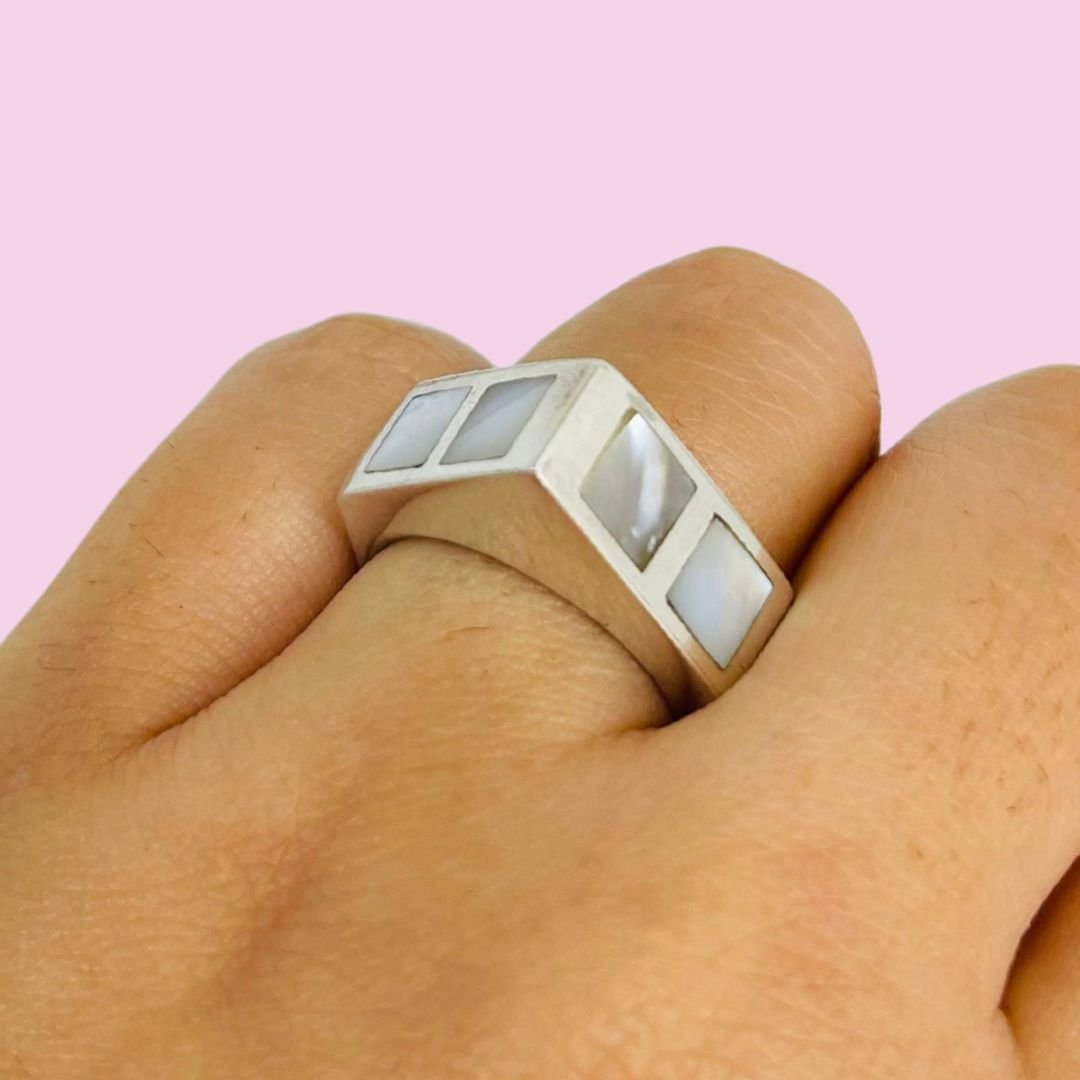 Artículo: AO 314-47Anillo con Nacar Blanco de Plata Peruana