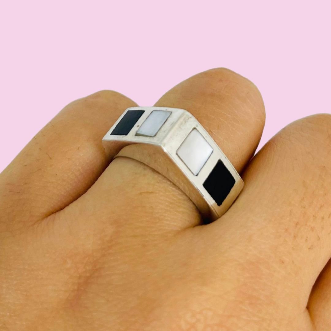 Anillo con Nacar Blanco y Negro Piedra Naturales de Plata Peruana