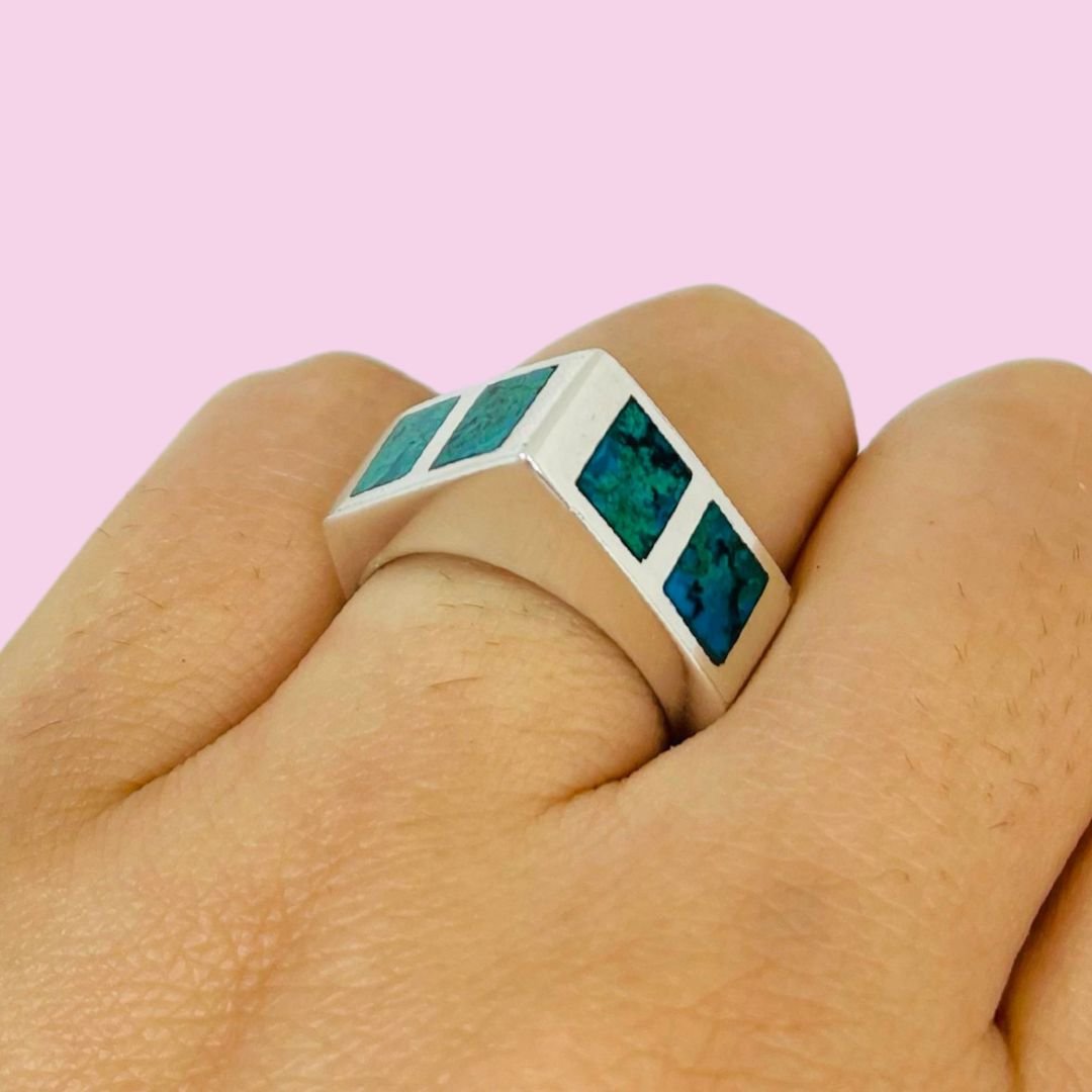 Anillo con Piedra Naturales dioptasa Verde de Plata Peruana