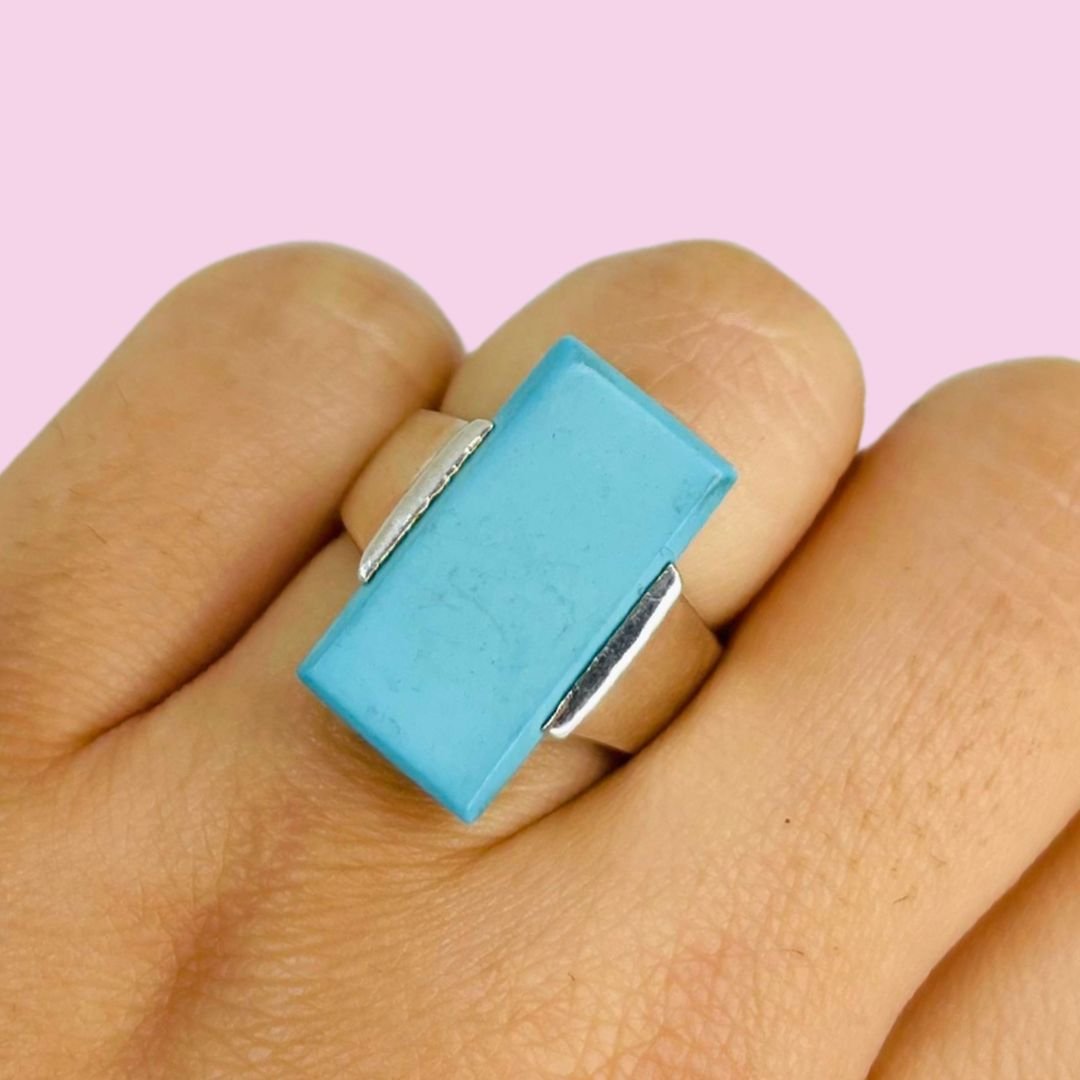 Anillo con Piedra Natural rectangular Aguamarina Plata Peruana