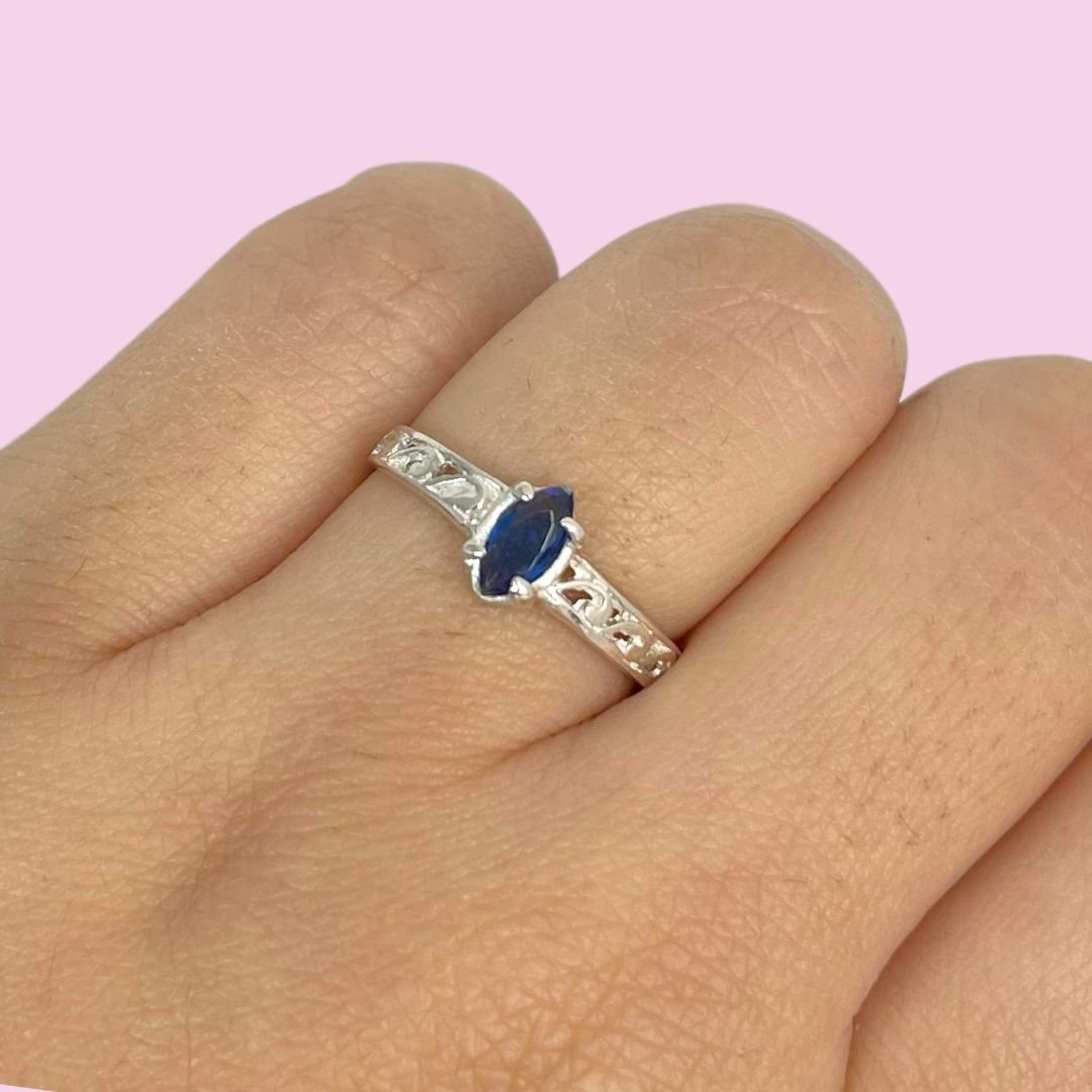 Artículo: AP 673-3Anillo Marquesita Azul Plata 925