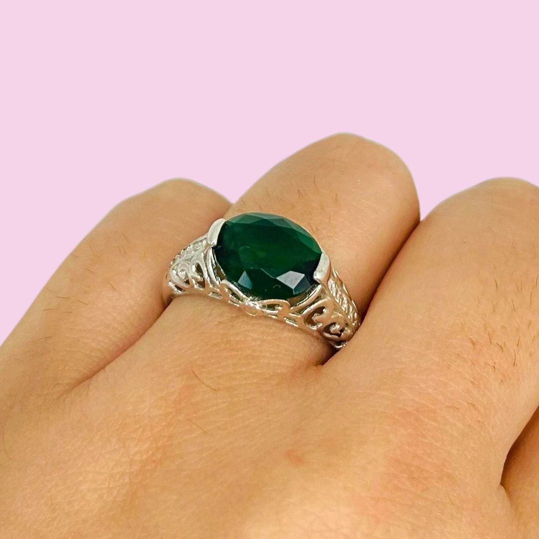 Artículo: AP 668-8Anillo Corte Real con piedra Verde Plata 925