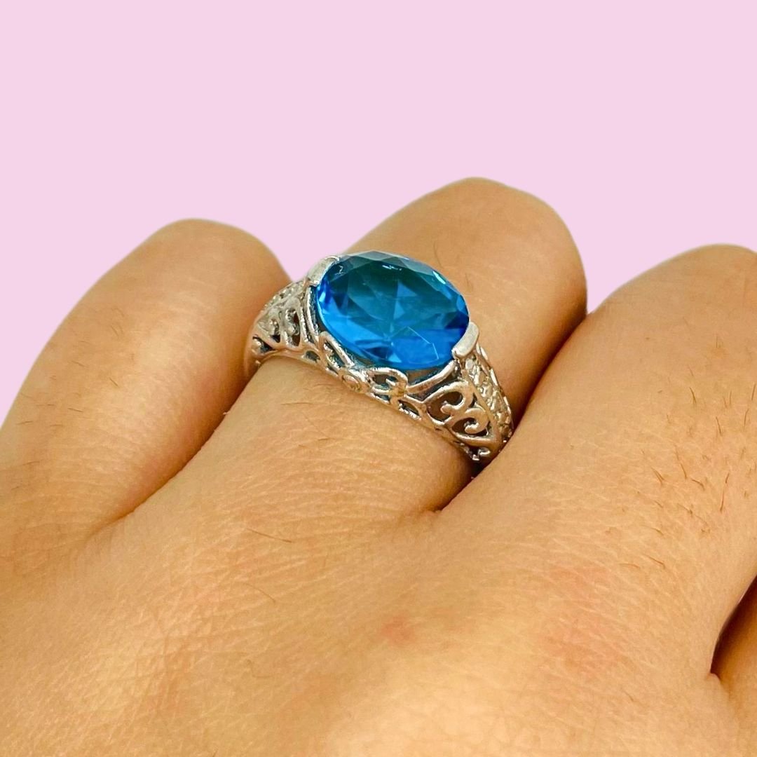 Anillo Corte Real con piedra Aguamarina Plata 925