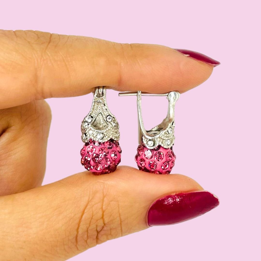 Aros Lady di con bolita con strass Fucsia 10mm de Plata 925