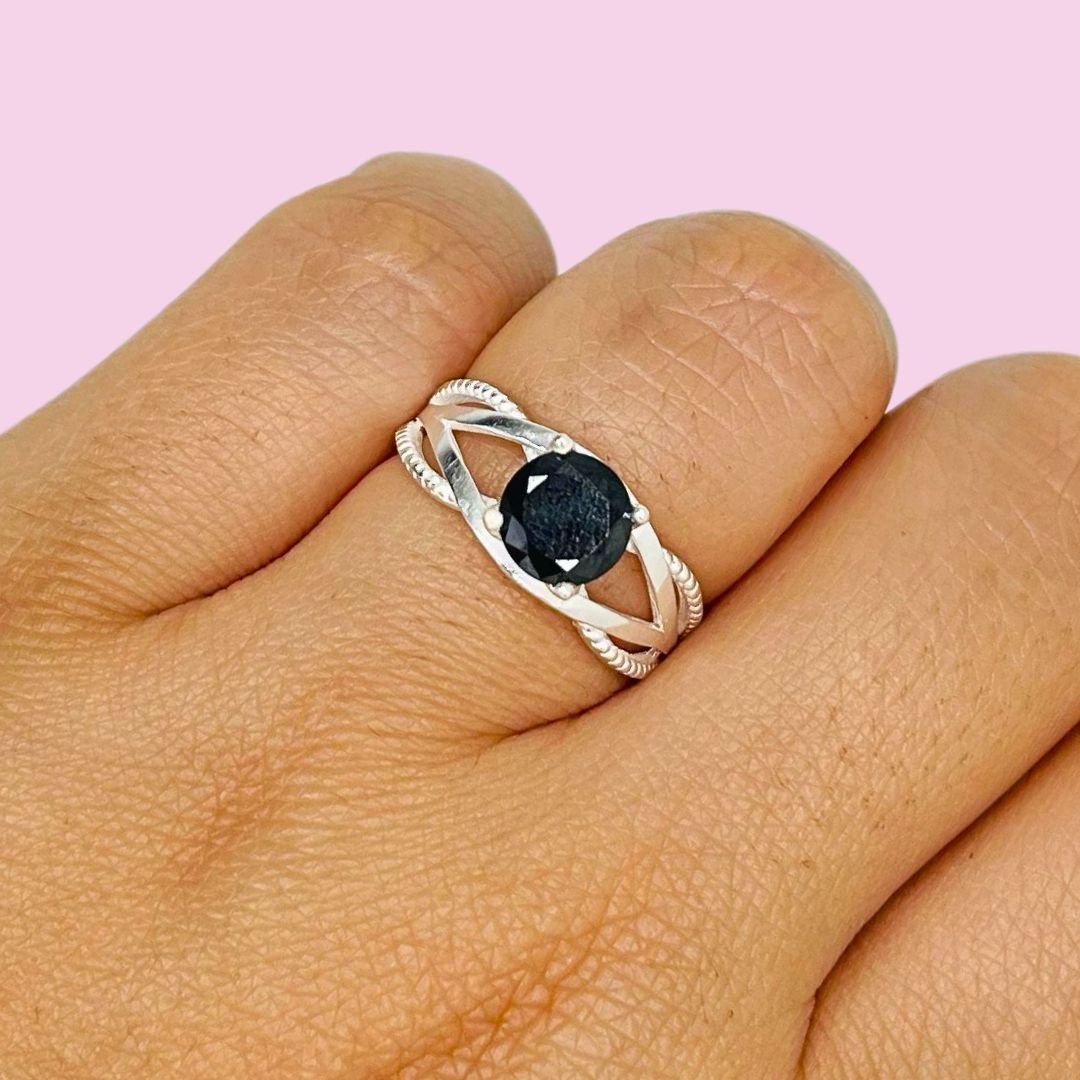 Anillo Elena Solitario Elegante Negro Plata 925