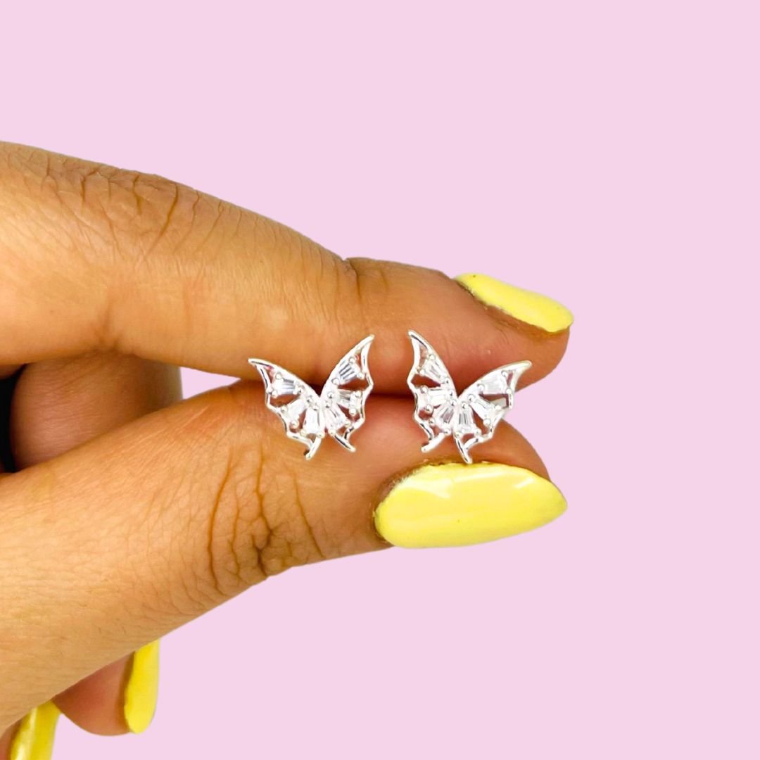 Artículo: AR 622Aros Mariposa con baguette Blanco de Plata 925