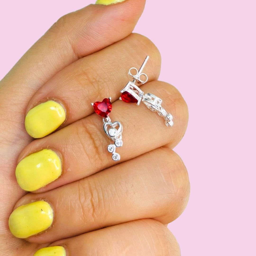 Artículo: AR 627Aros Corazones cubic Rojo Plata 925