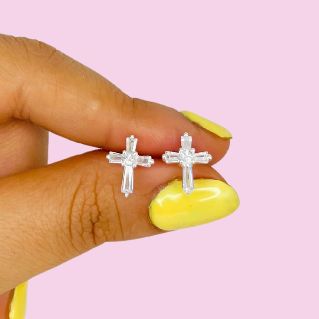 Artículo: AR 632Aros Cruz baguette Plata Italiana