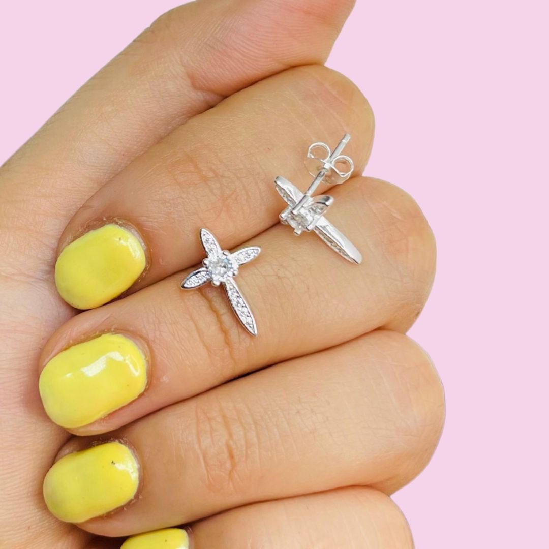 Aros Cruz con cubic y micropave Plata Italiana