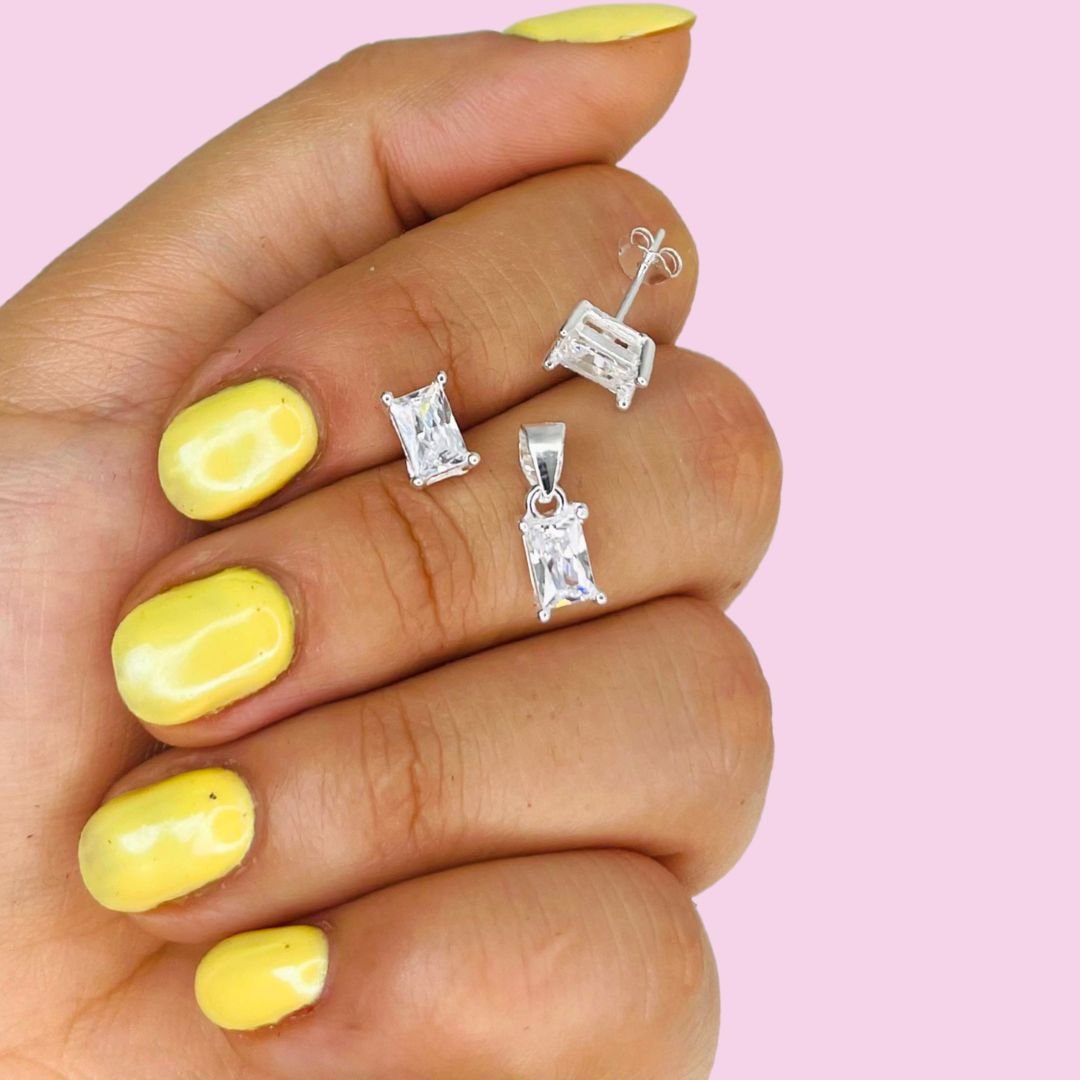 Artículo: KIT 345-1Conjunto Ivana Baguette Blanco Plata Italiana