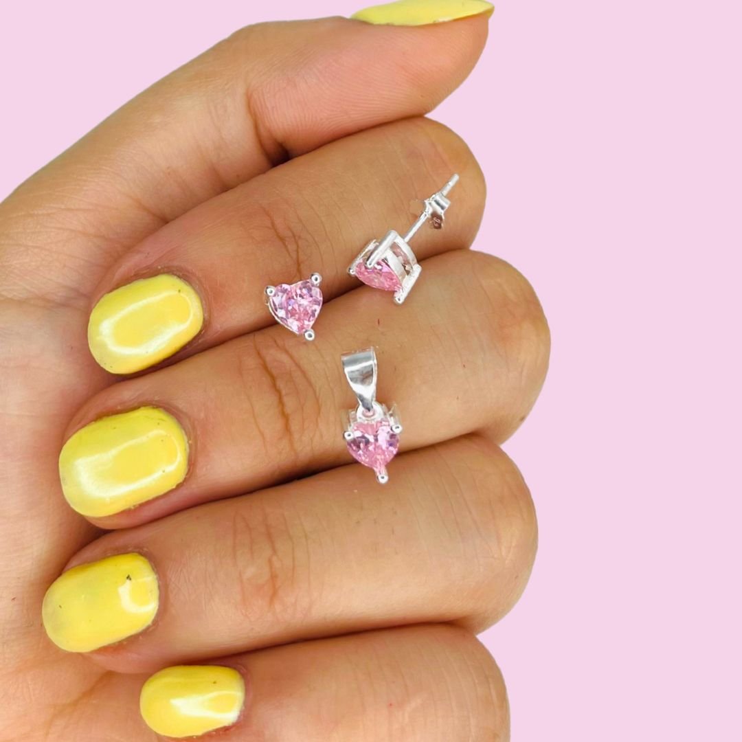 Artículo: KIT 347-1Conjunto Corazon cubic Rosa Plata Italiana