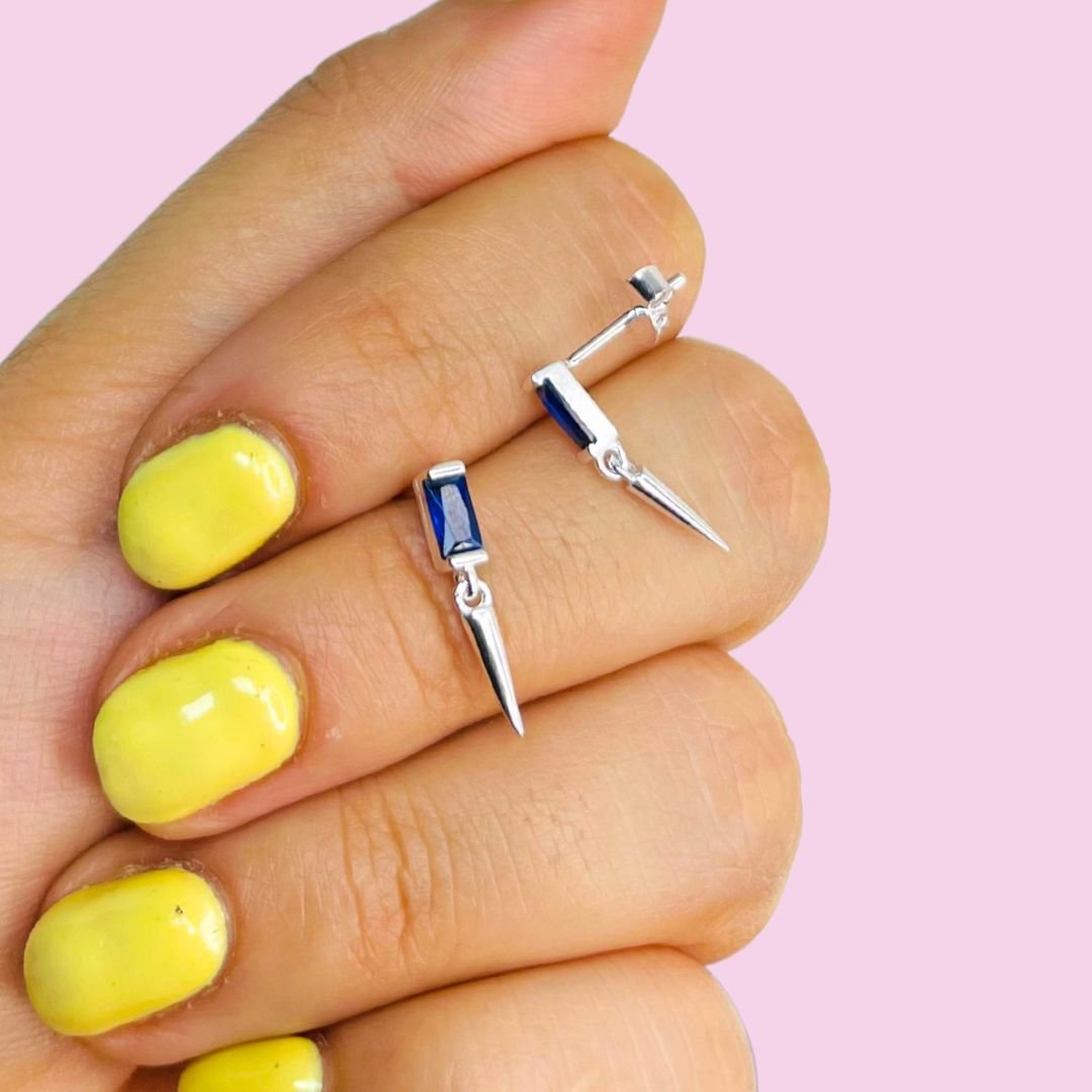Artículo: AR 640Aros Estaca con baguette Azul Plata Italiana