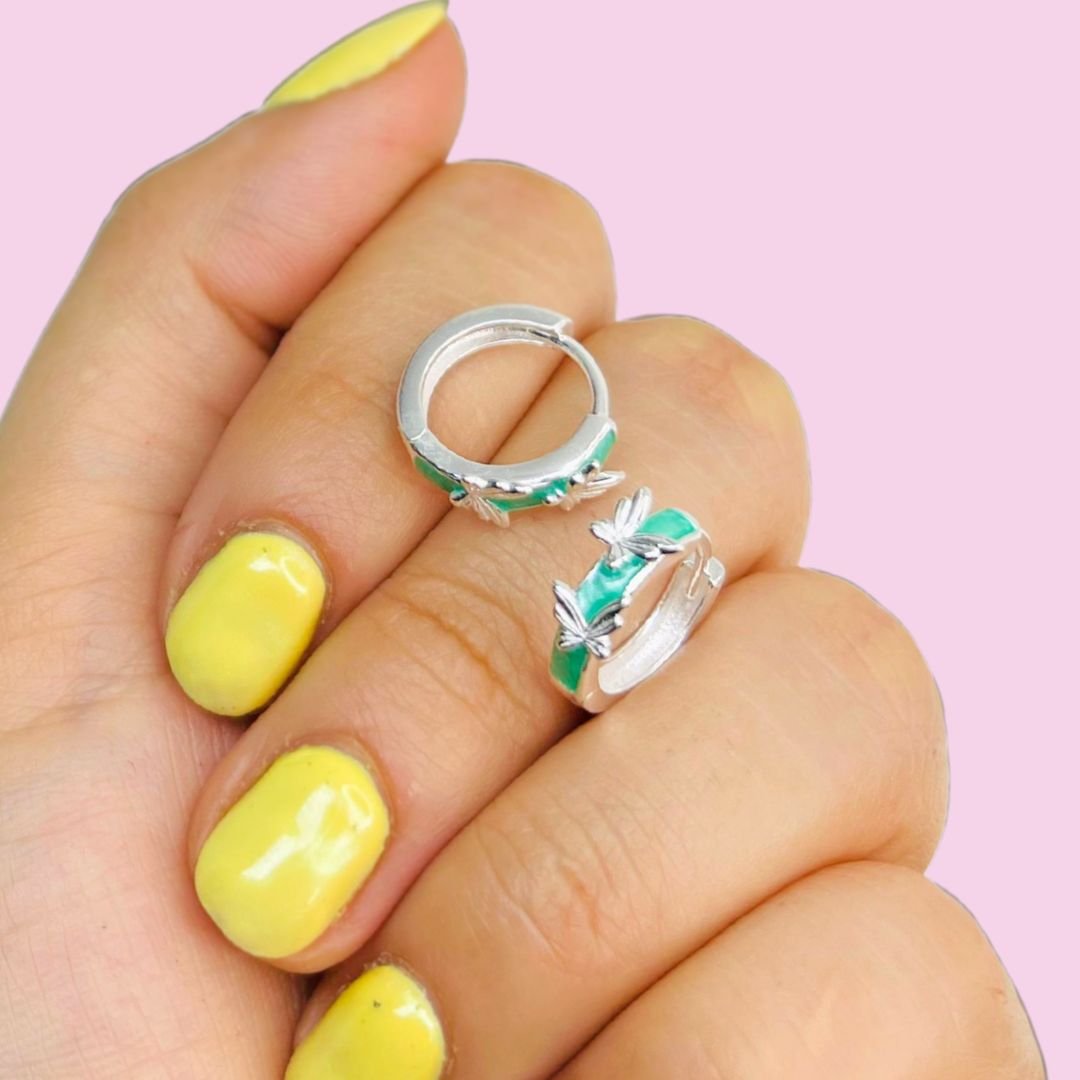 Aros Huggies Mariposas con esmaltado Aguamarina Plata Italiana