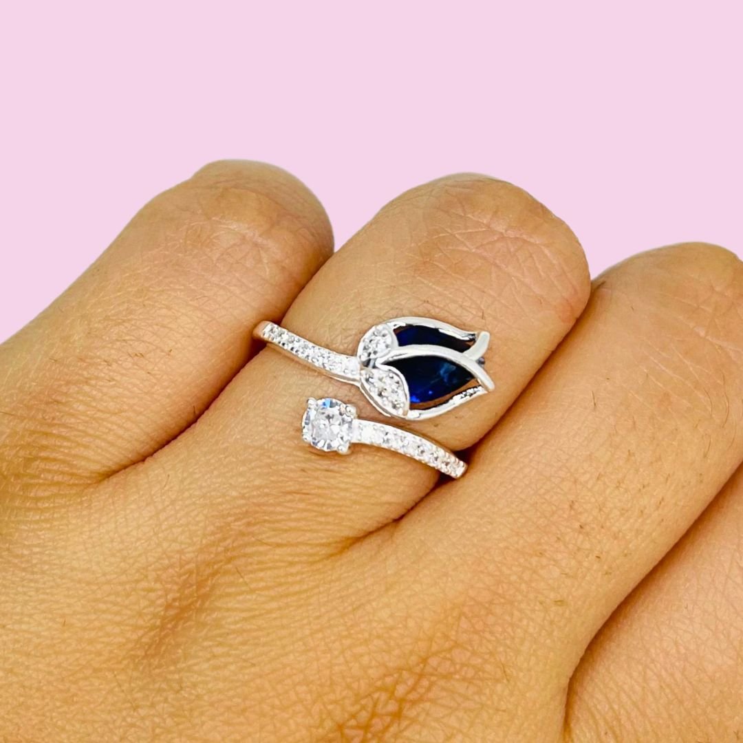 Anillo Rosa piedra Azul con micropave Plata Italiana