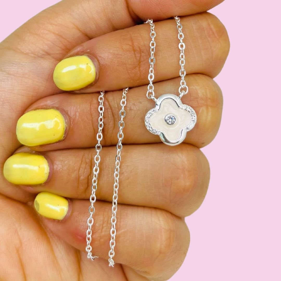 Conjunto Van Cleef micropave y esmaltado blanco Plata Italiana