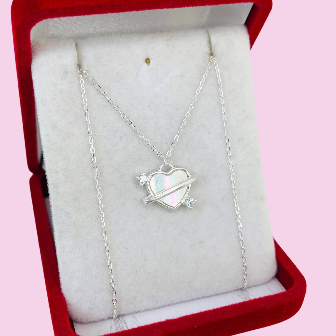 Conjunto Cadena Corazon con Nacar Plata Italiana