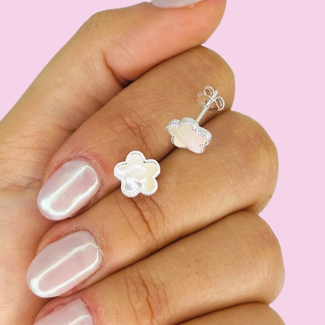Aros Flor Nacar Plata Italiana