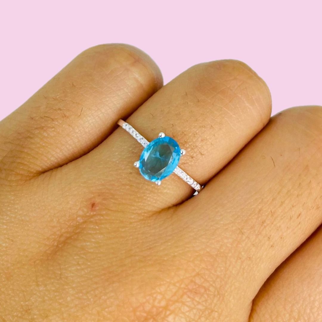 Anillo Solitario Compromiso Agua Plata Italiana