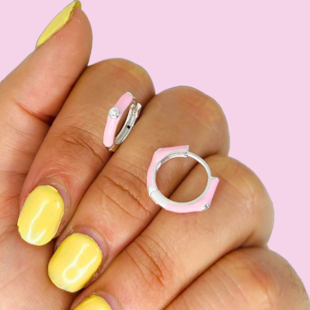 Aros Huggies con esmaltado rosa Plata Italiana