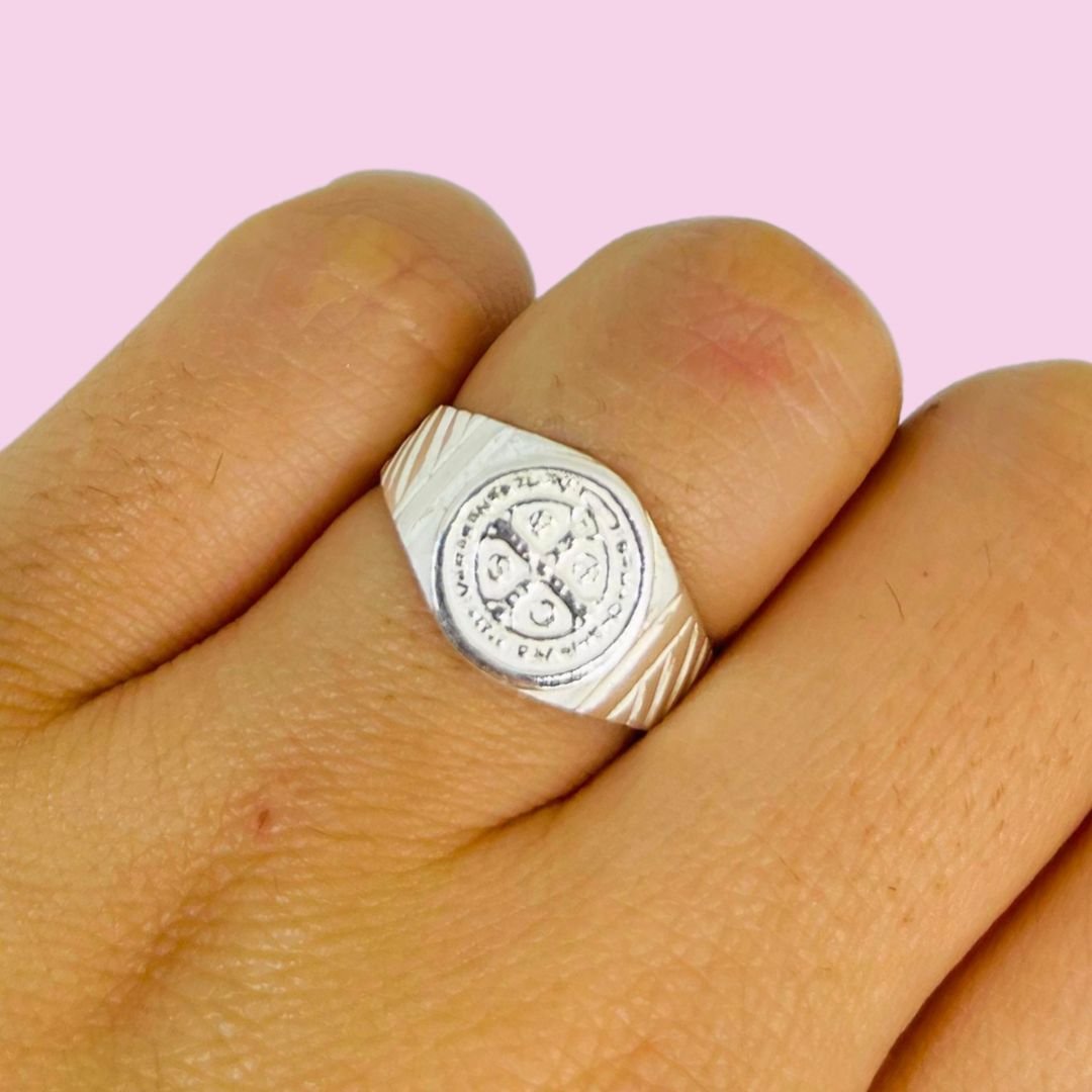 Anillo Sello San benito con rayas de Plata 925 de Plata 925