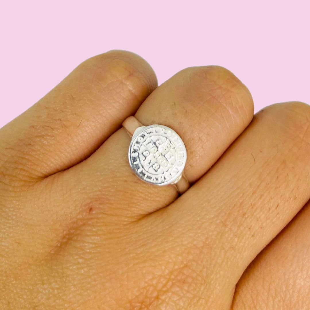 Anillo San Benito Clásico fino de Plata 925