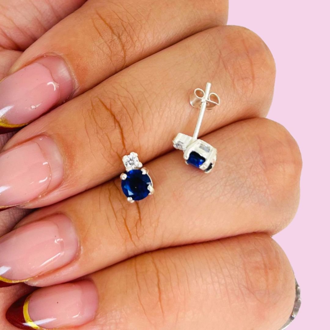 Aros Cubic Brillante Azul y blanco Plata 925