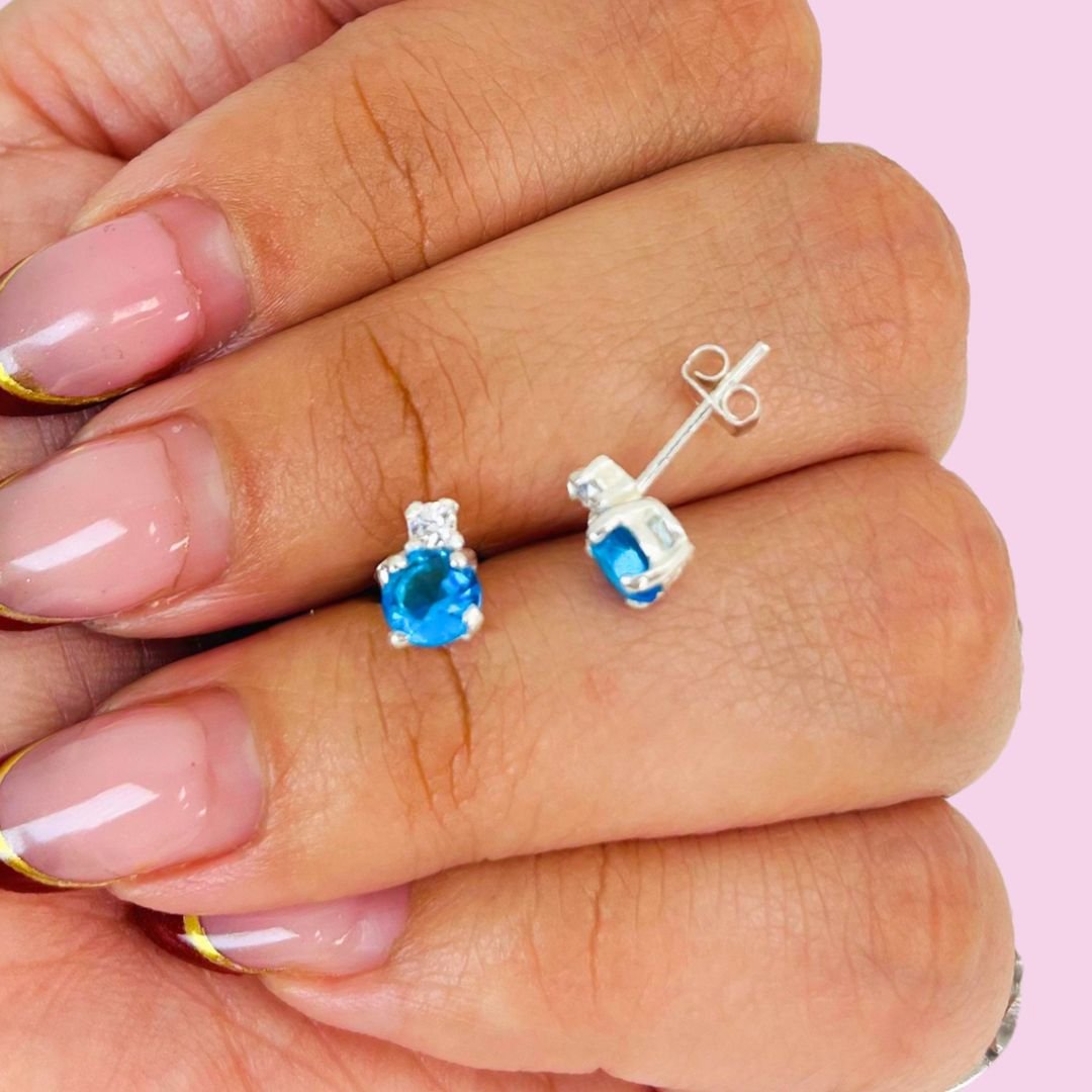 Aros Cubic Brillante Aguamarina y blanco Plata 925