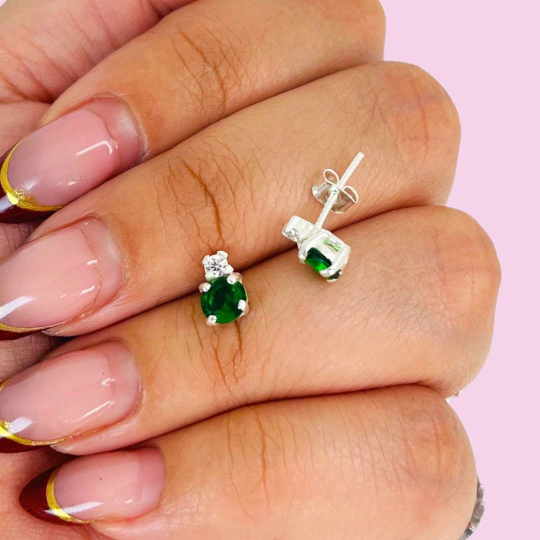 Aros Cubic Brillante Verde y blanco Plata 925