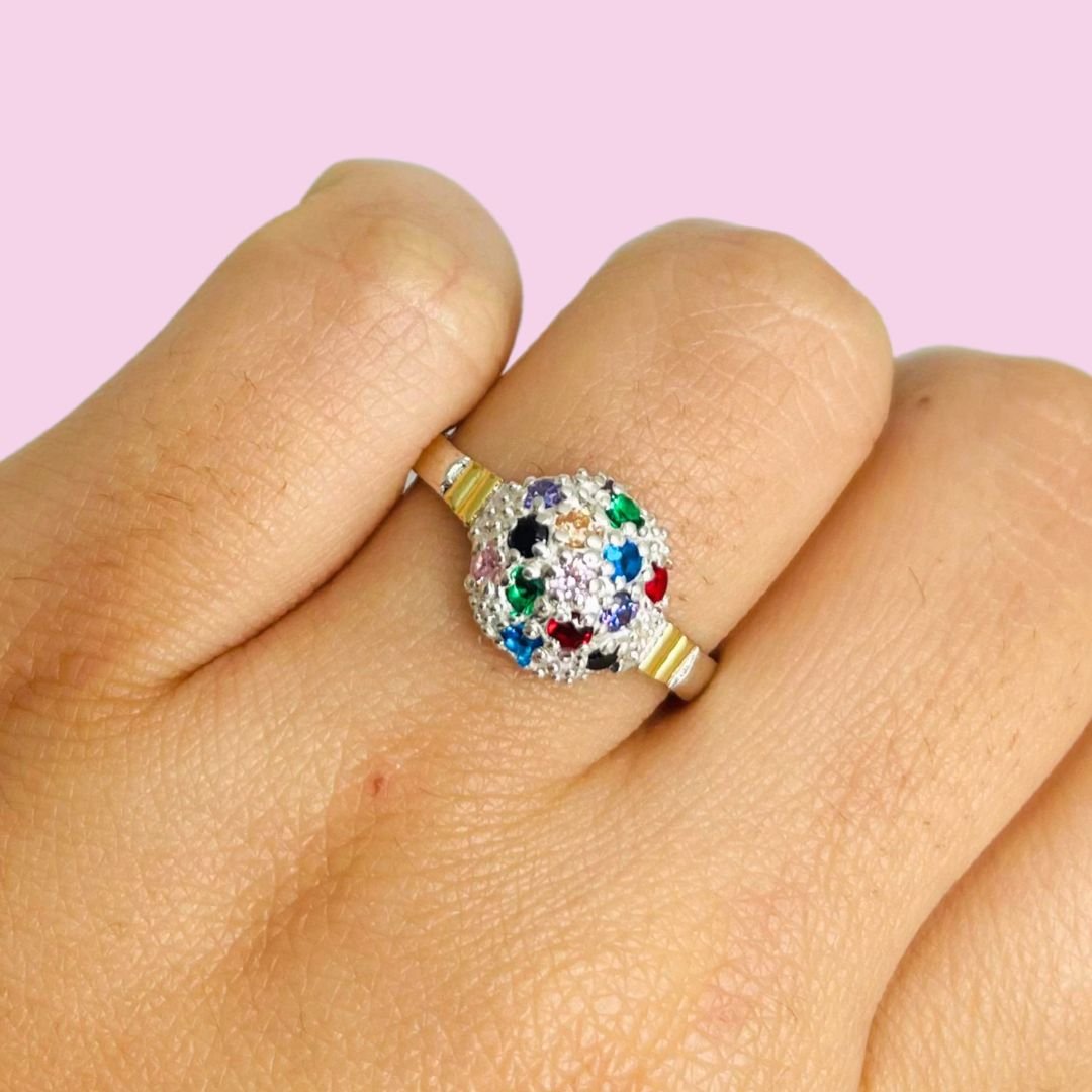 Anillo Frutilla mediano multicolor de Plata y Oro