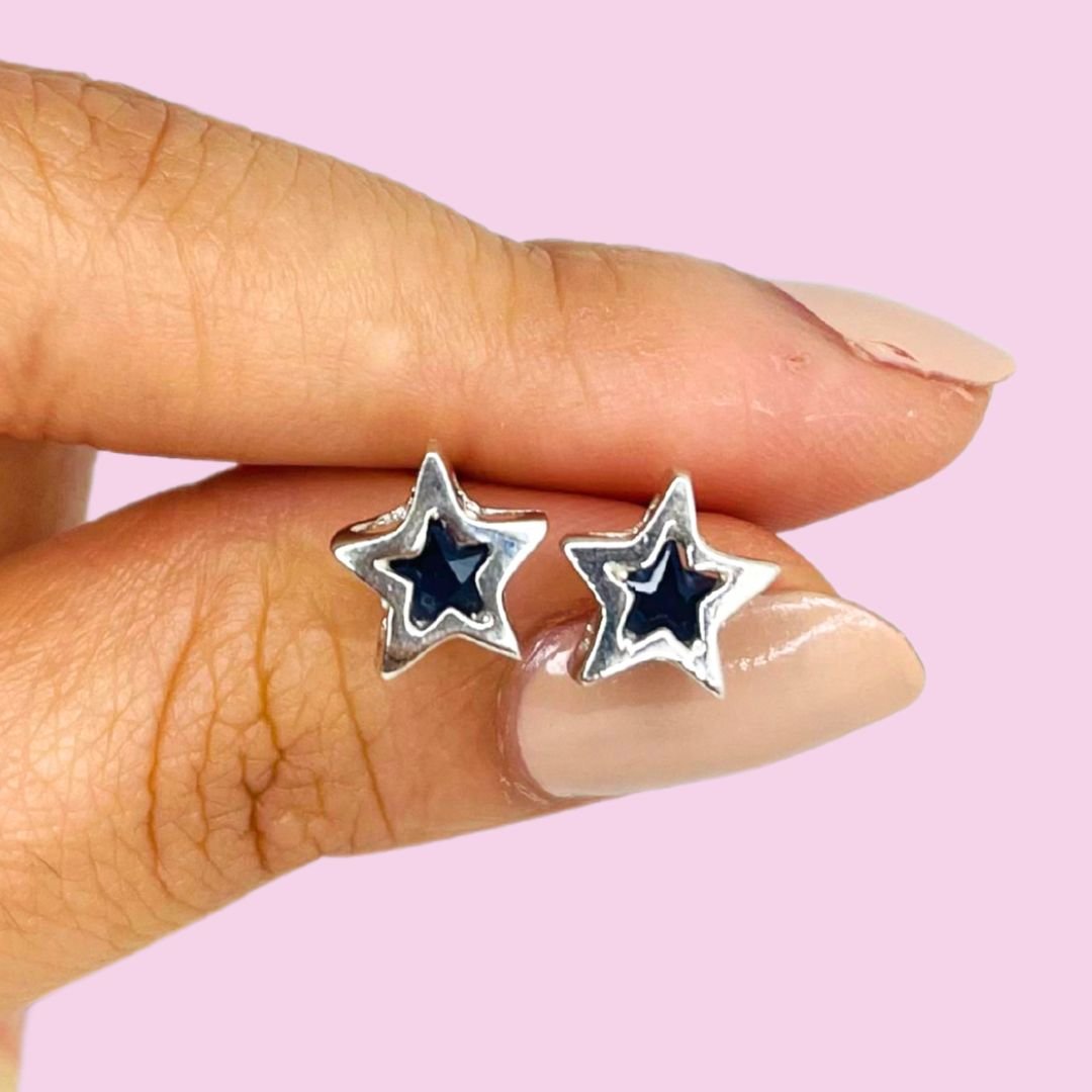 Aros Susanita Estrella a Rosca azul 10mm Plata 925