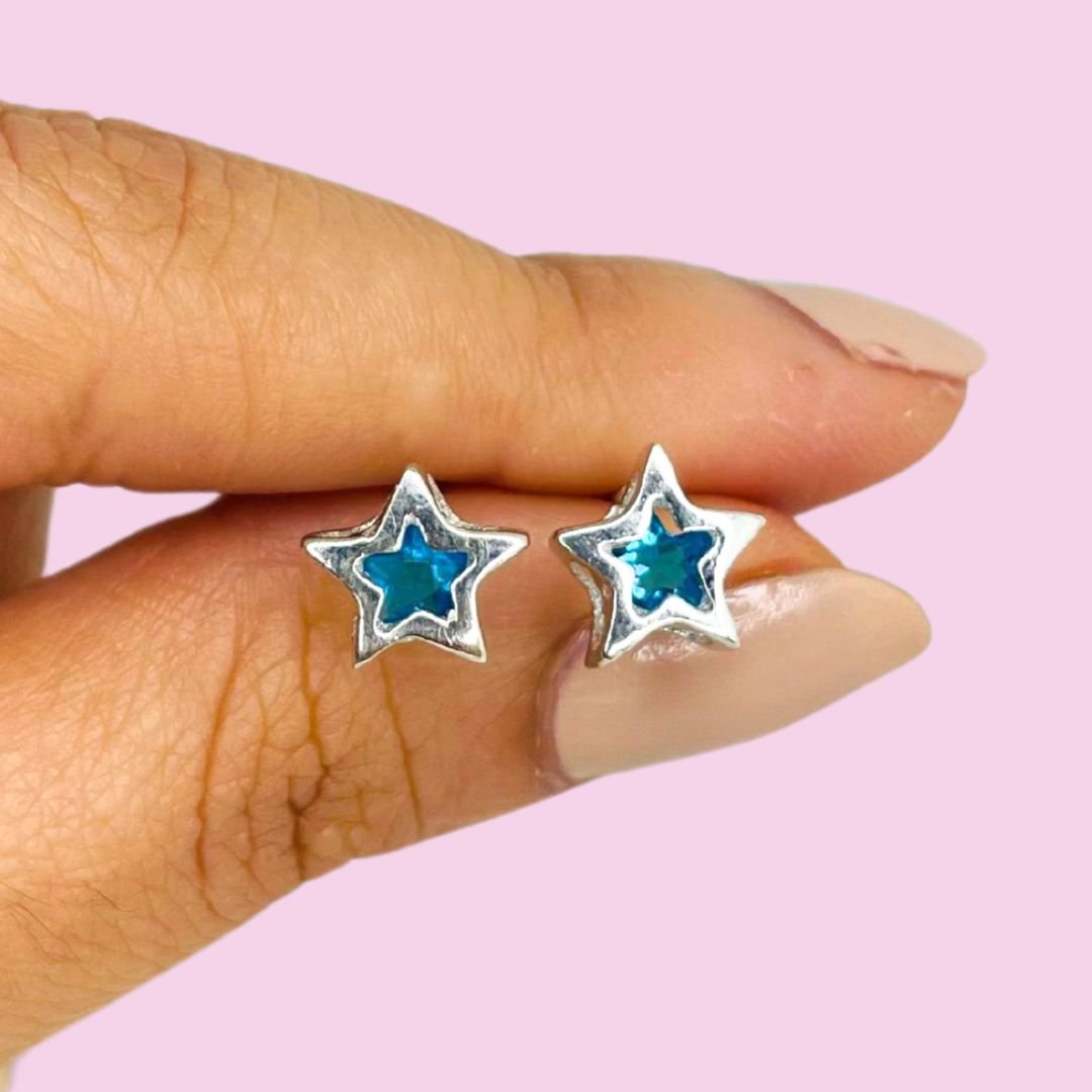 Aros Susanita Estrella a Rosca Aguamarina 10mm Plata 925