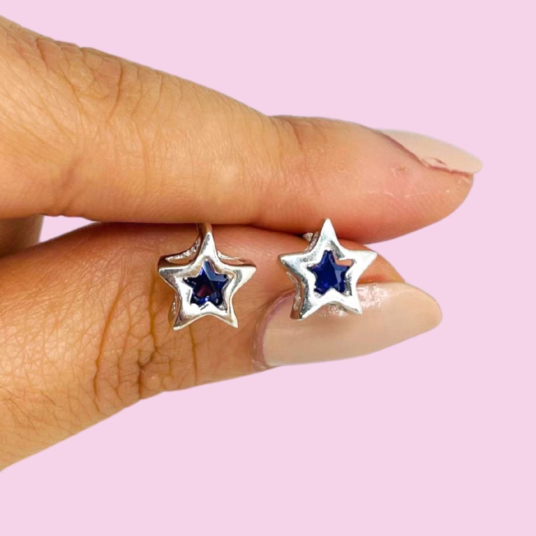 Aros Susanita Estrella a Rosca Lila 10mm Plata 925