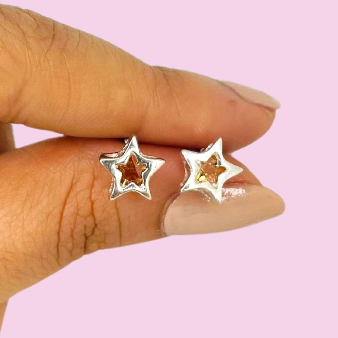 Aros Susanita Estrella a Rosca Ambar 10mm Plata 925