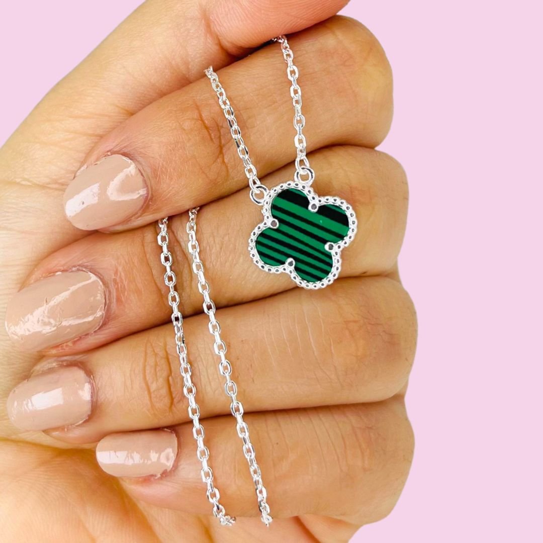Artículo: Kit 366-2Conjunto Cadena Van Cleef Malaquita Plata Italiana