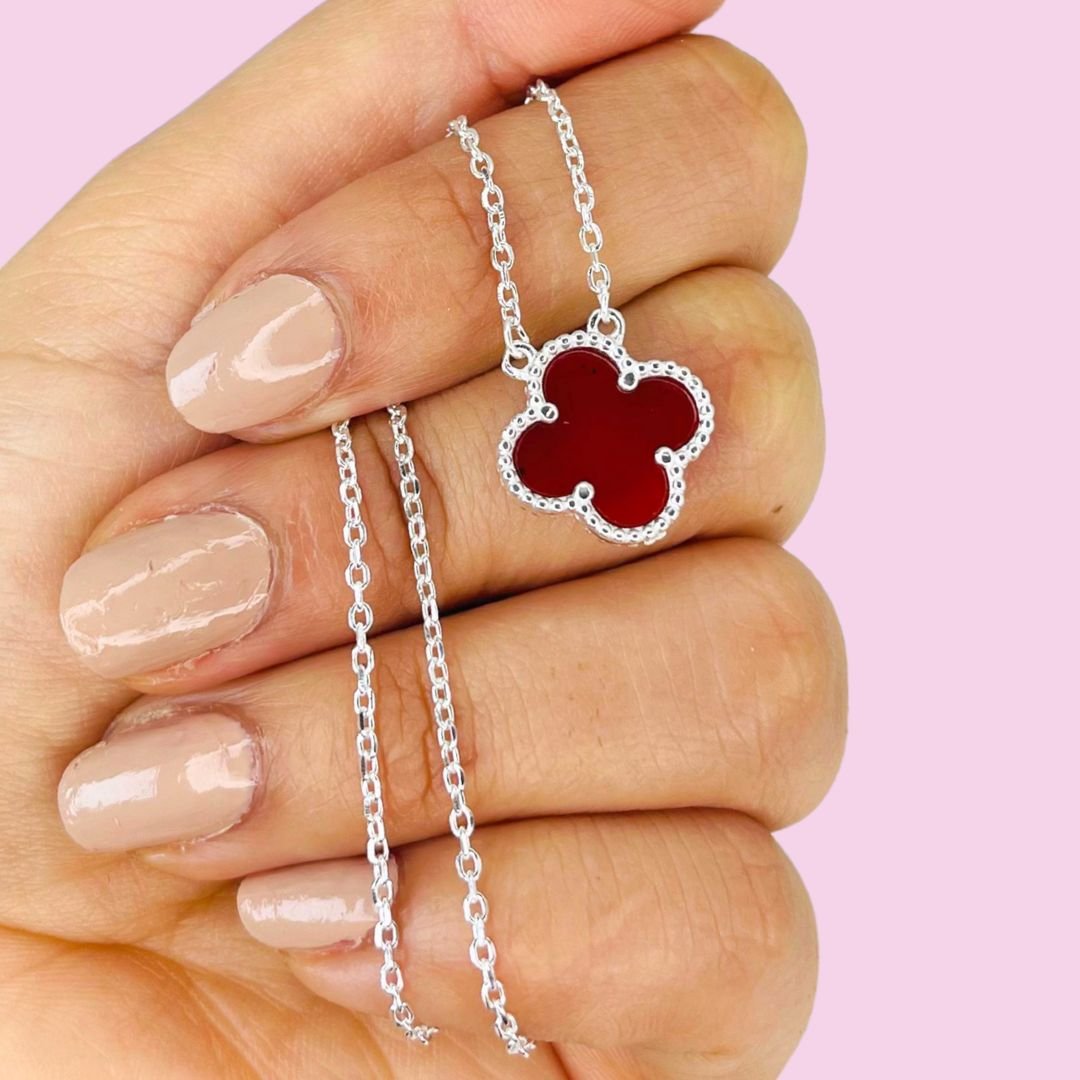 Conjunto Cadena Van Cleef Anaranjado Plata Italiana