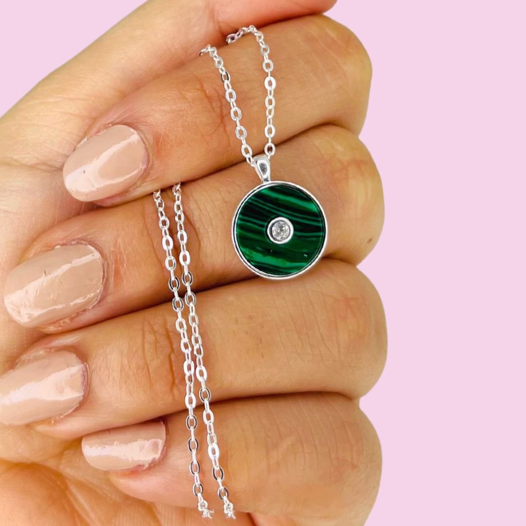 Conjunto Cadena Malaquita Redondo Plata Italiana