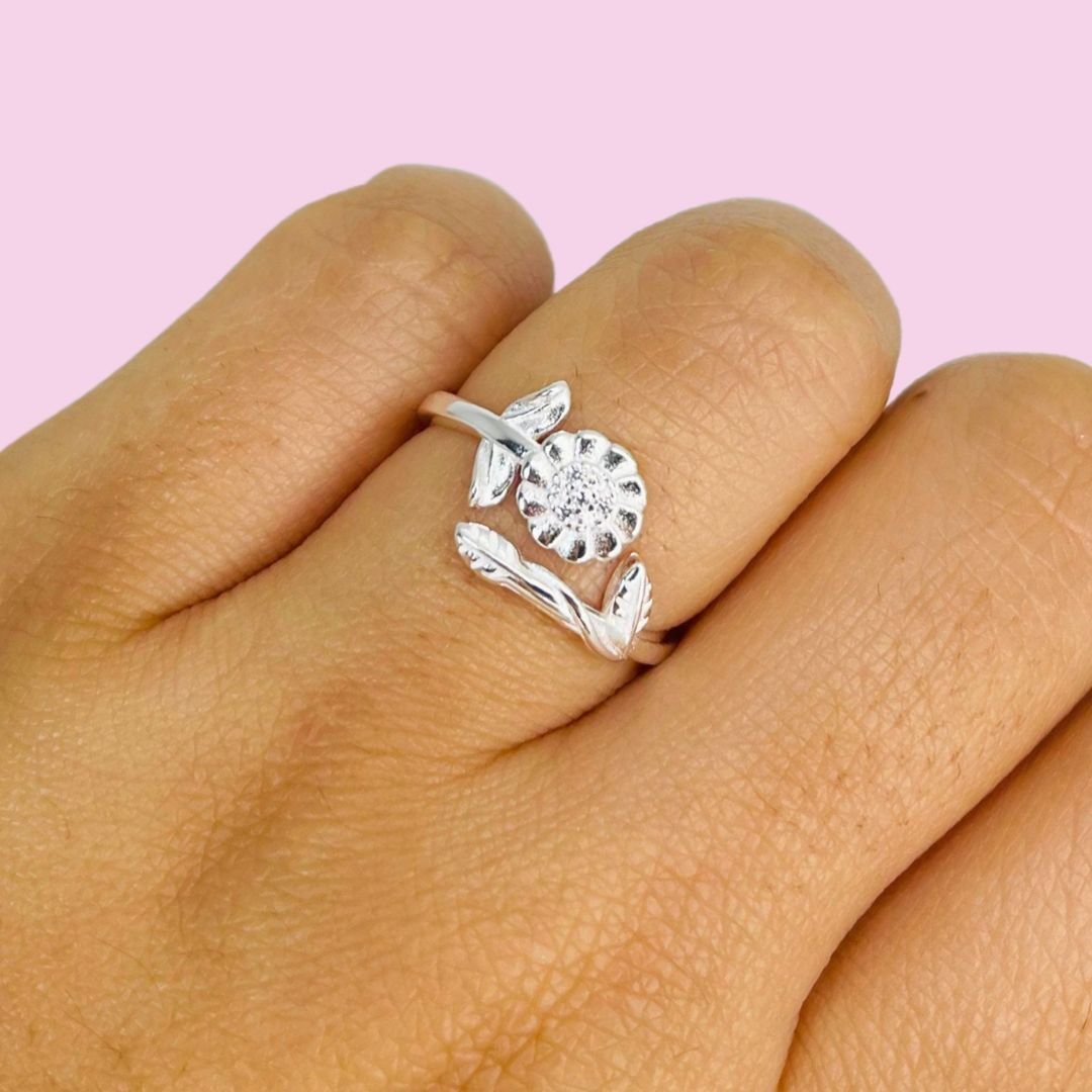 Anillo Girasol micropave Plata Italiana