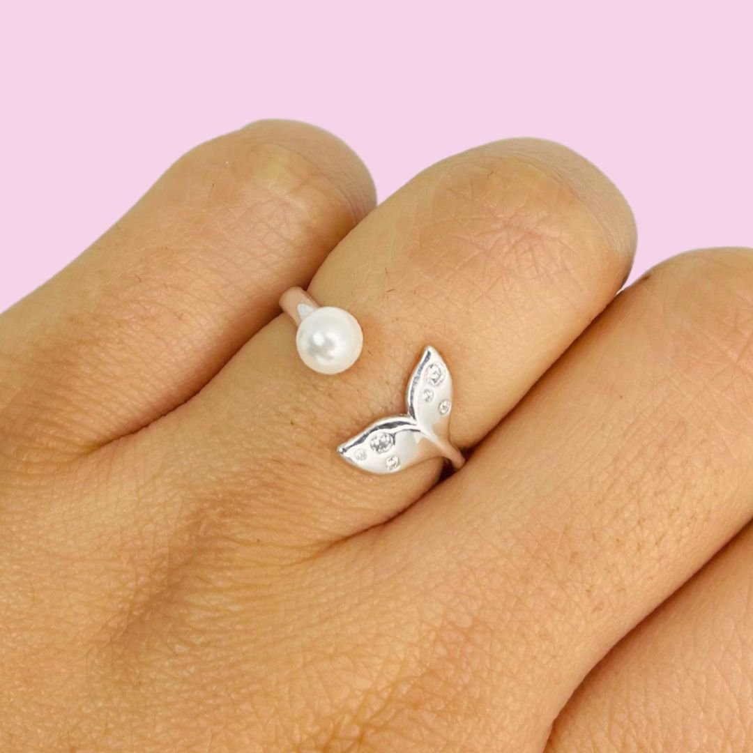 Anillo cola de sirena con perla Plata Italiana