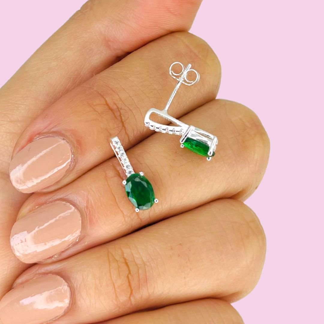Aros Cubic Verde oscuro con micropave blanco Plata Italiana