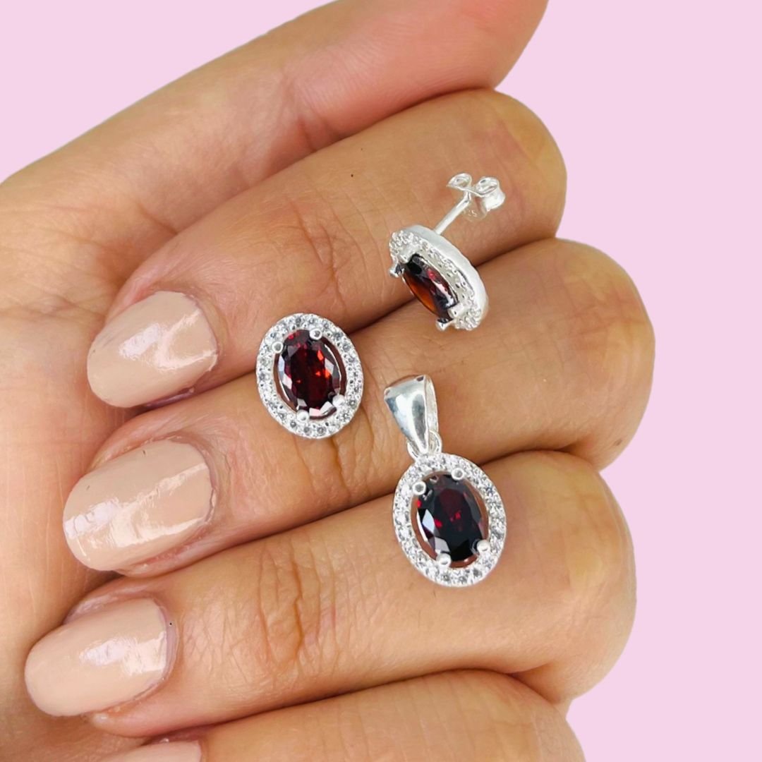 Conjunto Aros y Dije Ovalado Granada Plata Italiana