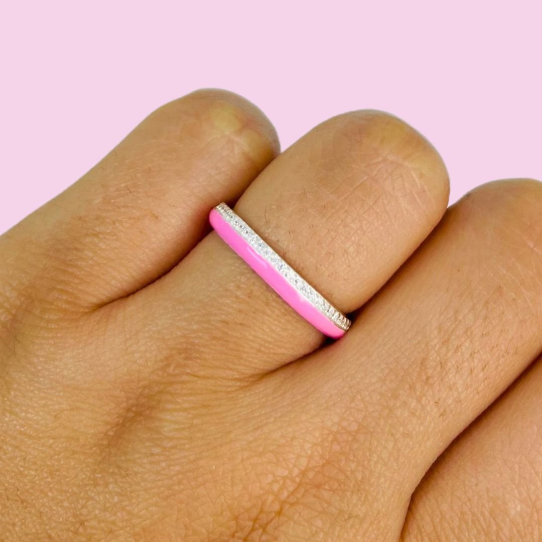 Anillo Medio Sin fin Blanco Esmaltado Rosa Plata Italiana